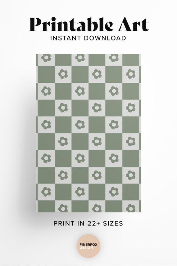 Checkered Sage Green Autumn Flower Poster Nursery Wall Art Etsy