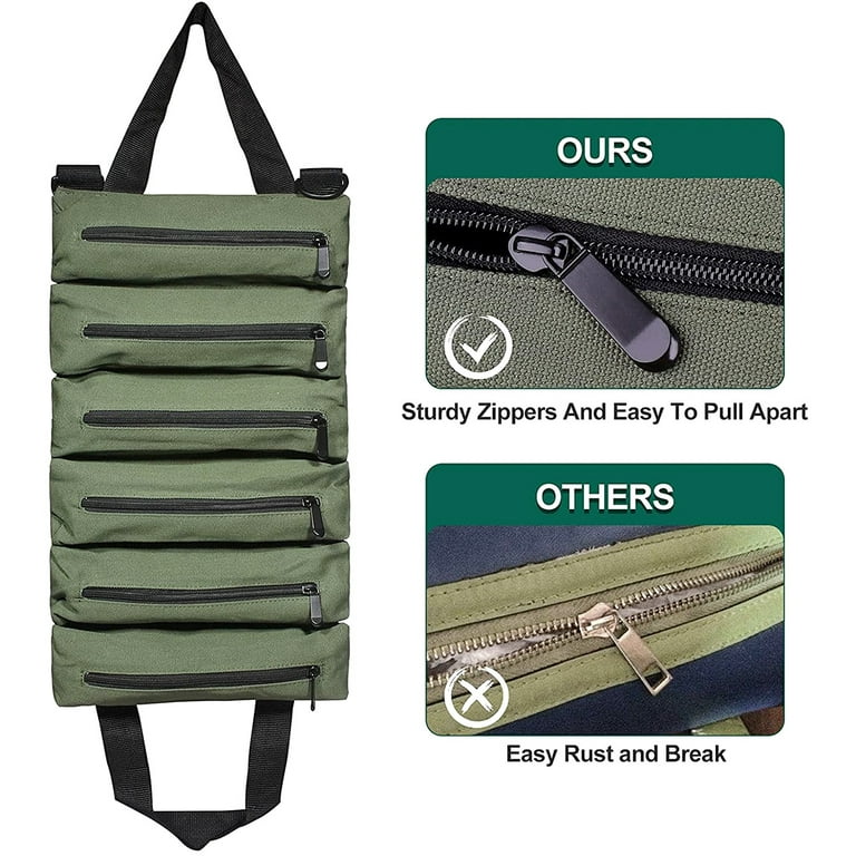 Tool Roll Up Bag Canvas With 6 Zipper Pockets Large Capacity Tools Wrap Roll Storage Case Hand Held Tool Carrier Tote For Home Outdoor Camping Travel Green Walmart Com
